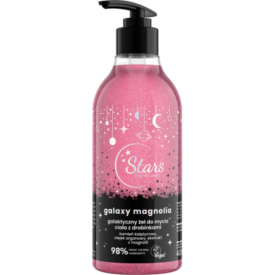 Galaktyczny żel do mycia ciała z drobinkami. Zmysłowy, pięknie pachnący, rozświetlający – produkt z kosmosu. Galaxy magnolia to żel stworzony z wyjątkowych składników: kamienia księżycowego, mangolii oraz olejku arganowego. Taki skład przeniesie Cię do nowego wymiaru. Naturalna formuła myjąca nie podrażnia skóry, magnolia dba o jej nawilżenie, natomiast olejek arganowy dodatkowo regeneruje. Opakowanie 400 ml… Czytaj dalej Stars from the Stars Galaxy magnolia